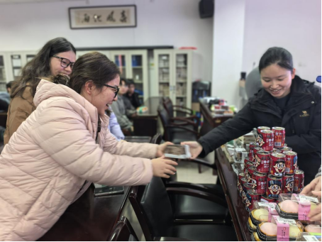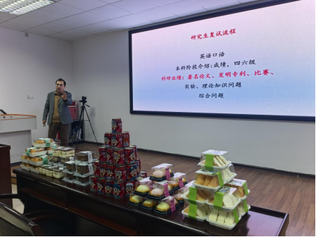 会议结束后,学院党委副书记余晓秋老师、辅导员马昭阳老师为即将参与复试的同学们送上蛋糕和旺仔牛奶,祝愿同学们步步登高、运气旺旺,能够在复试中取得良好的成绩。
