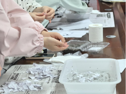 图2:学子动手处理废弃纸张