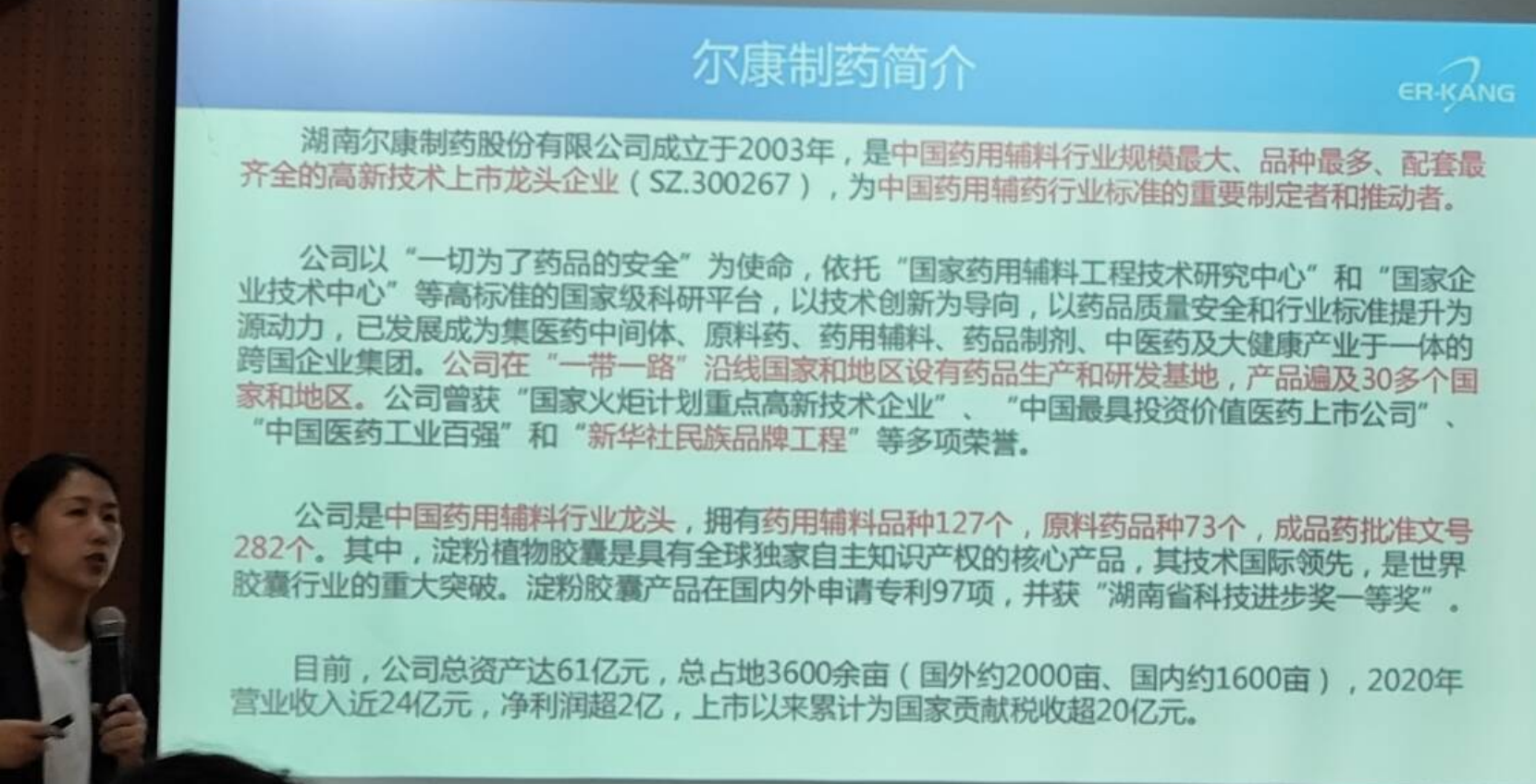 图4:尔康制药人事部主管屈萍介绍企业发展史