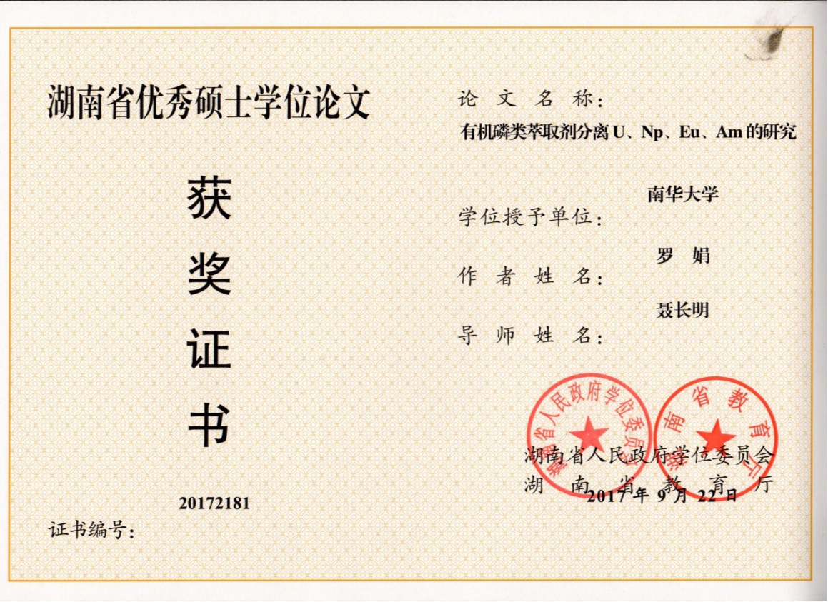 我院研究生论文荣获2017年湖南省优秀硕士学位论文
