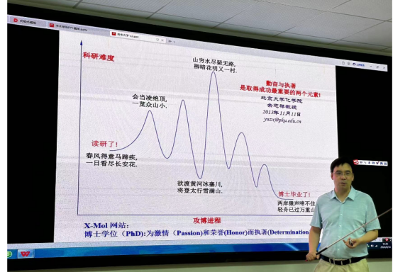 报告结束后,现场的老师与学生就有关成环反应中的问题与余志祥教授进行了交流和讨论,现场学术氛围十分浓郁。最后“千沟万流虽幸苦,吹尽狂沙始到金”,余教授将这句古典名句赠与在场各位科研人。