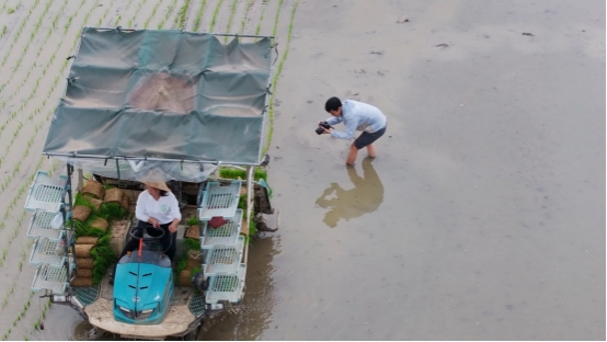 蒋桢桢在水田里拍摄