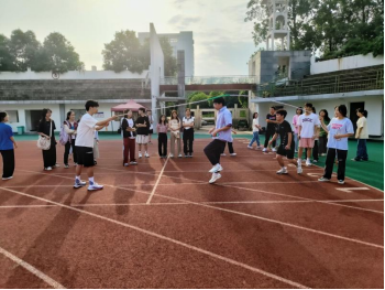 为了丰富校园文化生活,增强学生体质,培养学生合作意识,bv伟德国际1946于5月25日7:00在北校田径运动场举行团体花样跳绳比赛,学院各班自由组队参加比赛,学院团委书记马昭阳现场观赛。