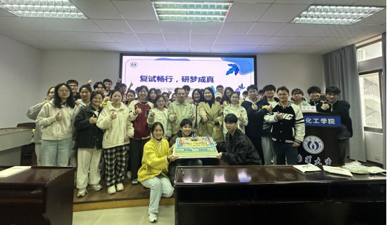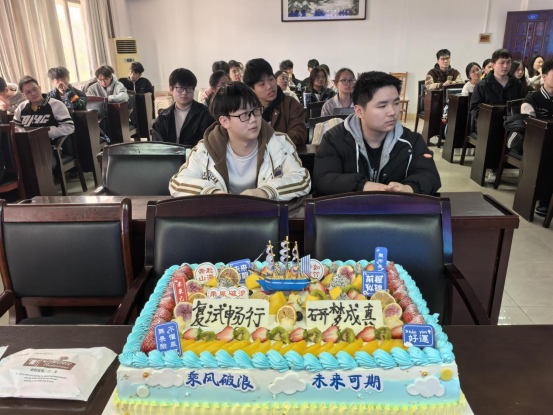 会议最后,学院党委副书记余晓秋与学工室全体辅导员老师为现场同学分享祝福蛋糕,并祝愿同学们复试畅行,研梦成真!