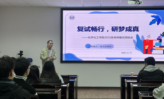 2025年3月17日,bv伟德国际1946在化工楼411会议室举办2021级复试考研领航会。会议邀请学院副院长何卫民教授现场授课。
