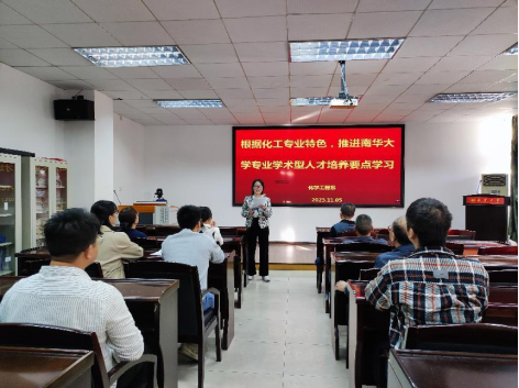 首先,姚陈老师从学术型人才一般特征、本科阶段学术型人才培养的重点、伟德国际victor1946学术型人才培养的目标定位、学校层面本科生学术型人才培养的着力点、学校层面本科生学术型人才培养的着力点、教研室(系)及教师层面本科生学术型人才培养的着力点、学术型本科生发展目标定位、重点关注的学术型人才培养指标等八个方面进行了阐述,化工系全体教师进行了深入的学习和交流。