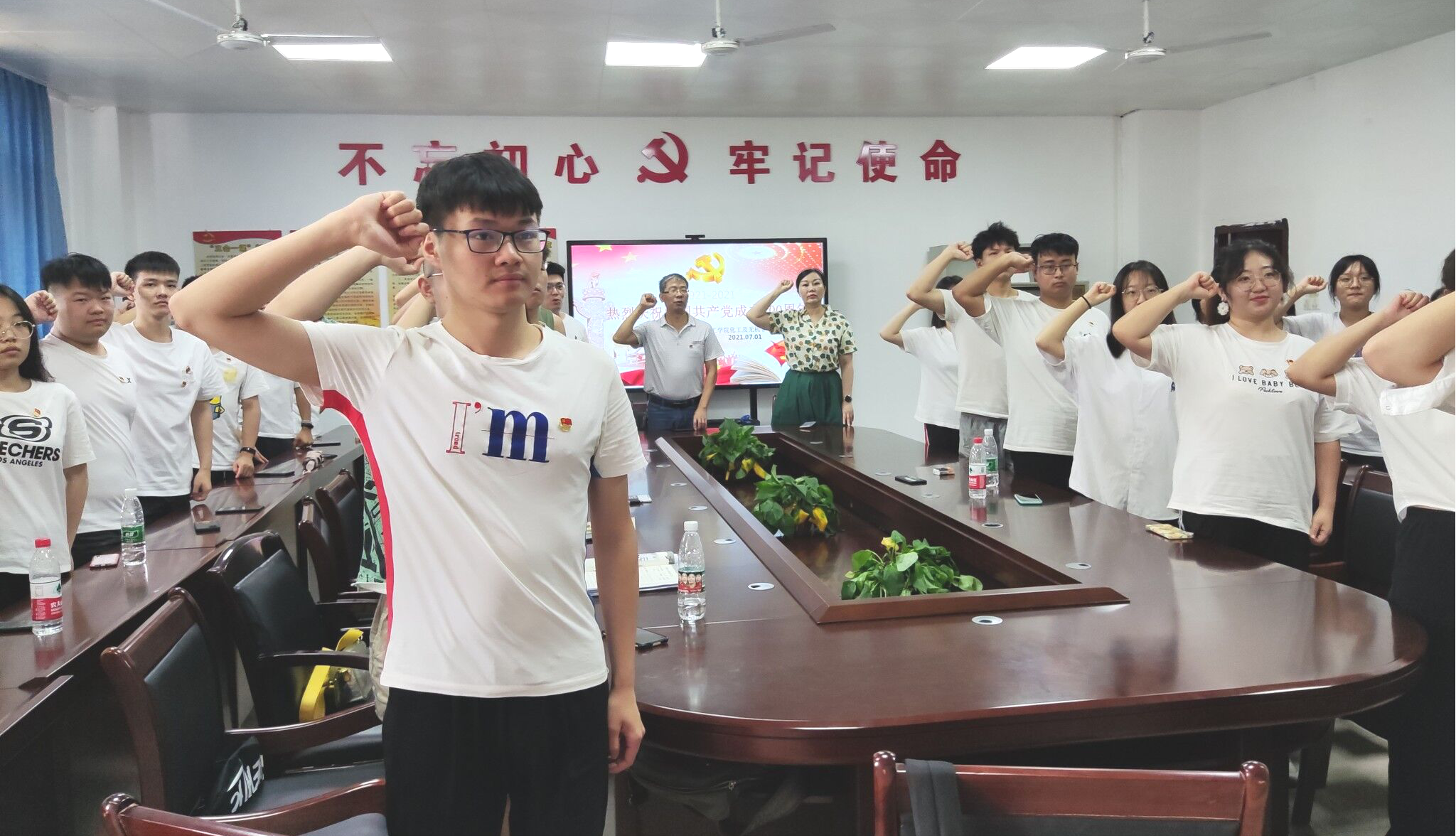 分享会之后,支部副书记颜晔带领全体党员重温入党誓词,在党员同志们声声铿锵、句句坚定的誓词中,更加坚定了中国共产党人为中国人民谋幸福、为中华民族谋复兴的初心使命。