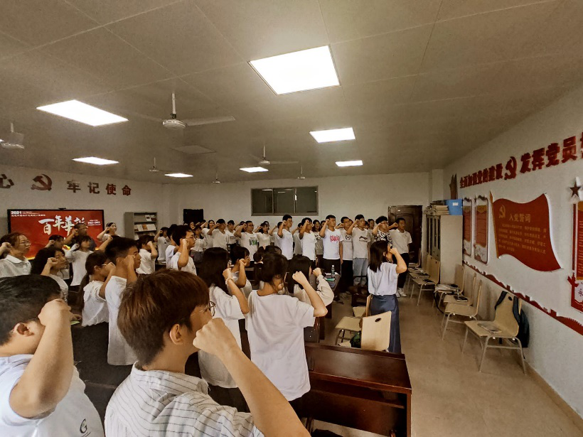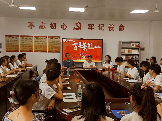 建党百年,精神隽永,我辈传承!专题组织生活会圆满结束后,陈楠带领党员同志重温入党誓词。铿锵誓词在耳边回荡,中国共产党好的时代强音在心中奏响。随后,全体党员同志合唱《唱支山歌给党听》。一曲深情的旋律在耳畔飘萦,一句真挚的话语在心中升腾,“唱支山歌给党听”感恩我们的“母亲”。接着王宏青进行总结,新青年要不负韶华,奋斗青春。中共党员必将奏响时代最强音!最后由陈雯、王瑛朗诵红色经典诗歌《奇迹》,朗诵完毕,学生党支部共同分享庆祝建党百年主题蛋糕。在分享蛋糕的喜悦中感受来自党组织大家庭的亲切温暖,重温建党百年的峥嵘岁月。